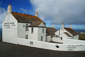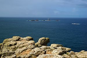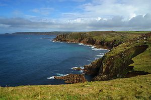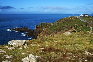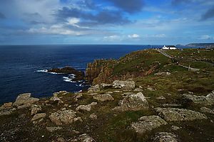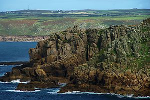 (Wikipedia) Land’s End (kornisch Penn an Wlas [KK], Pen an Wlas [UCR]), in der Nähe von Penzance, Cornwall gelegen, ist eine Ortschaft und die gleichnamige Landzunge. Die Spitze der Landzunge ist der westlichste Punkt Englands auf der Hauptinsel Großbritanniens. Etwa 40 Kilometer südöstlich befindet sich auf der Halbinsel The Lizard der Lizard Point, der südlichste Punkt Großbritanniens, quasi in direkter Nachbarschaft. Die etwa 45 Kilometer südwestlich von Land’s End gelegenen Scilly-Inseln sind der westlichste Punkt Englands. Bei klarem Wetter sind sie von der etwa 60 Meter hohen Klippe über dem Atlantik aus zu sehen. Weiterhin ist von hier aus der etwa zwei Kilometer südlich gelegene Longship Leuchtturm (1795, bzw. Nachfolgebau von 1893) sichtbar, der auf einer aus Quarzit und Serpentinit gebildeten Insel steht.