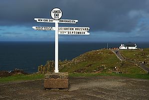 (Wikipedia) Land’s End ist wegen der geographischen Lage oftmals Ausgangspunkt von Wanderungen (auf dem South West Coast Path), Fahrradtouren, Reisen und Rallyes quer durch Großbritannien, zum Beispiel mit Oldtimern.[1] Die Gegenstücke dazu sind John o’ Groats, der (angeblich) nördlichste Punkt auf der Hauptinsel Großbritanniens, und Lowestoft, der östlichste Punkt auf der Hauptinsel Großbritanniens. Große Entfernungen werden in Großbritannien oft mit der Metapher „von Land’s End bis John o’ Groats“ beschrieben.
