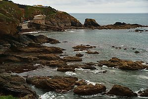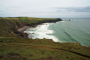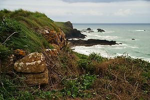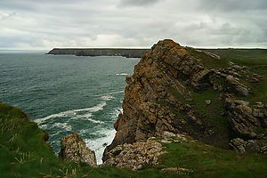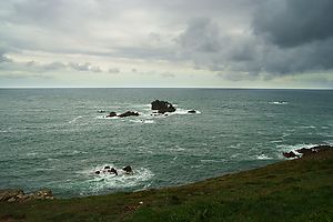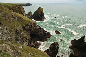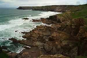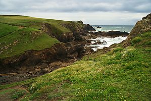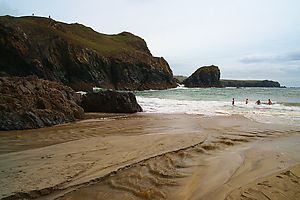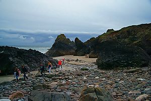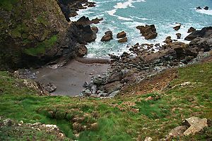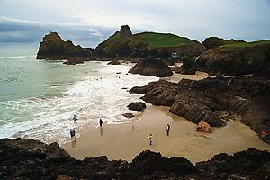 (Wikipedia) Kynance Cove ( Cornish : Porth Keynans , bedeutet Schlucht Bucht ) ist eine Bucht auf der östlichen Seite der Mount's Bay , Cornwall , England, Großbritannien . Es liegt auf der Halbinsel Lizard etwa zwei Meilen (3 km) nördlich von Lizard Point . [1] Die Bucht wurde in der frühen viktorianischen Ära populär , durch viele bekannte Besuchern wie Königin Victoria und Prinz Albert und dem Dichter Alfred Tennyson . Die BBChat Kynance Cove gilt als "eine der schönsten Küstenstreifen im Südwesten". Der Sout West Coast Path , der der Küste von Südwestengland von Somerset nach Dorset folgt , verläuft auf den Klippen von Kynance Cove.