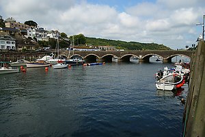 (Wikipedia) Looe liegt 32 km westlich von Plymouth, 45 km östlich von St Austell und 11 km südlich von Liskeard. Der gleichnamige Fluss teilt die Stadt in Ost-Looe und West-Looe, die beide durch eine Brücke verbunden sind. Zwei unweit von Looe gelegene Buchten eröffnen den Blick auf den Ärmelkanal und den Atlantik: die Looe-Bucht mit einem Sandstrand sowie die Hannafore-Bucht mit dem Hannafore-Aussichtspunkt