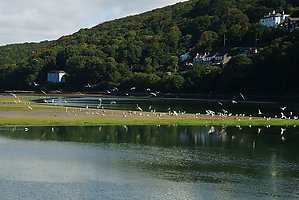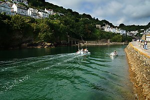 (Wikipedia) Looe (kornisch: Logh) ist eine kleine Küstenstadt (civil parish) im Südosten der englischen Grafschaft Cornwall im Vereinigten Königreich. In Looe leben rund 5112 Einwohner (Volkszählung 2011). Der Fischer-Hafen ist ein Zentrum fürs Haiangeln, vor der Küste treten vermehrt Blauhaie auf.