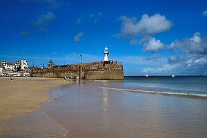 (Wikipedia) Im Jahr 1877 wurde eine Eisenbahnstrecke von der nahegelegenen Gemeinde St Erth nach St Ives gebaut. Die Stadt wurde danach zum beliebten Ausflugs- und Ferienort, nicht zuletzt deshalb, weil sich im Ort selbst zwei große Strände (Porthminster Beach und Porthmeor Beach) und ein weiterer kleiner Strand (Porthgwidden Beach) befinden. In der Nähe findet man die Carbis Bay und den kilometerlangen Strand der St Ives Bay. Alle Strände sind bereits mehrfach ausgezeichnet worden aufgrund ihrer Lage, ihrer Blicke und ihres feinen weißen Sandes.