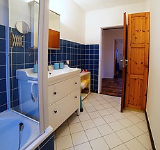 Das Schlafzimmer ist mit einem 1,80m breiten Doppelbett eingerichtet.